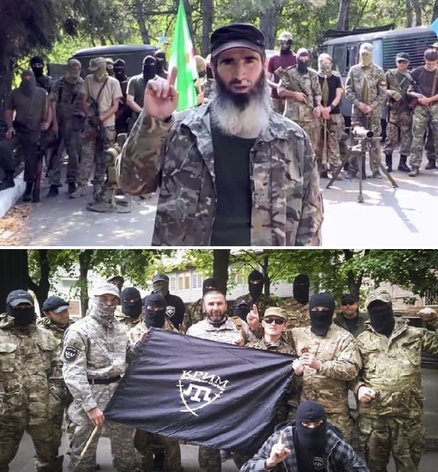 Заявили о себе и крымско-татарские боевики, сбежавшие с Крымского полуострова после его вхождения в состав России. Командир батальона «Крым» Иса Акаев обратился к российским мусульманам с призывом покинуть украинскую территорию либо вместе с джихадистами «бороться и убивать всеми разрешенными шариатом способами» российских военнослужащих.